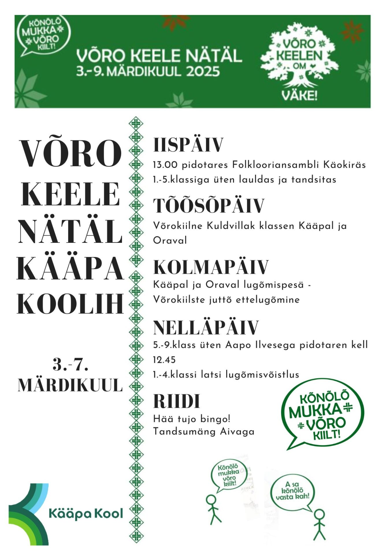 Võro keele nädäli kava printmises A3, A4 ja A5