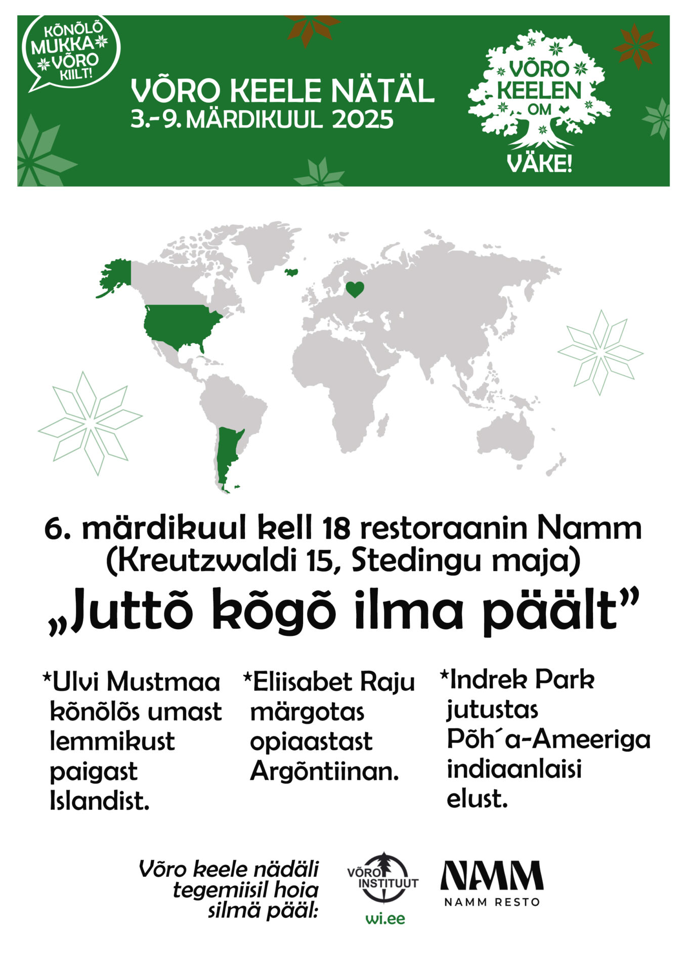 Võro keele nädäli päisit ja teedüspõhju saa tarvita umahindä võrokeelidse üritüse reklaamis.