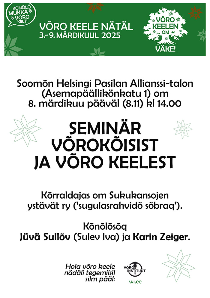 8.11 kell 14.00 seminär võrokõisist ja võro keelest